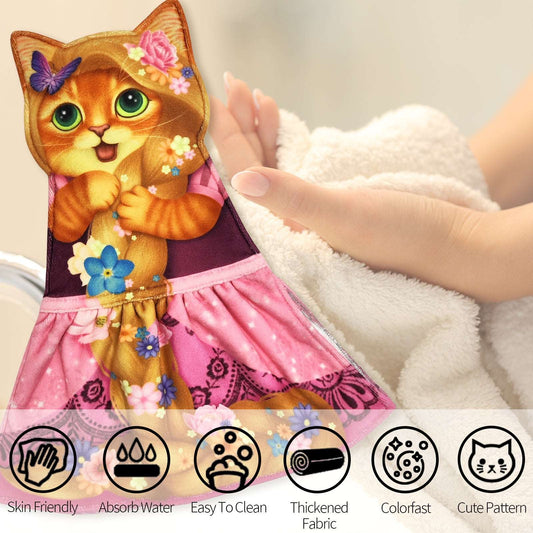 Openhahaha Cat Hand Towels for Bathroom Kitchen-Cute Cat Hanging Towel Decorative Animal Washcloths Face Towels Cat Decor-Funny Housewarming Cat Gifts for Cat Lovers