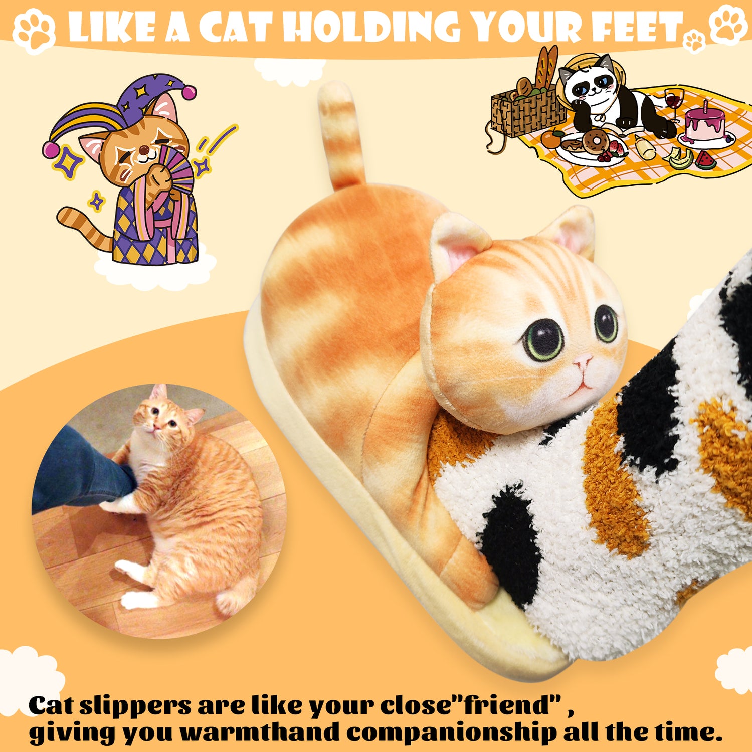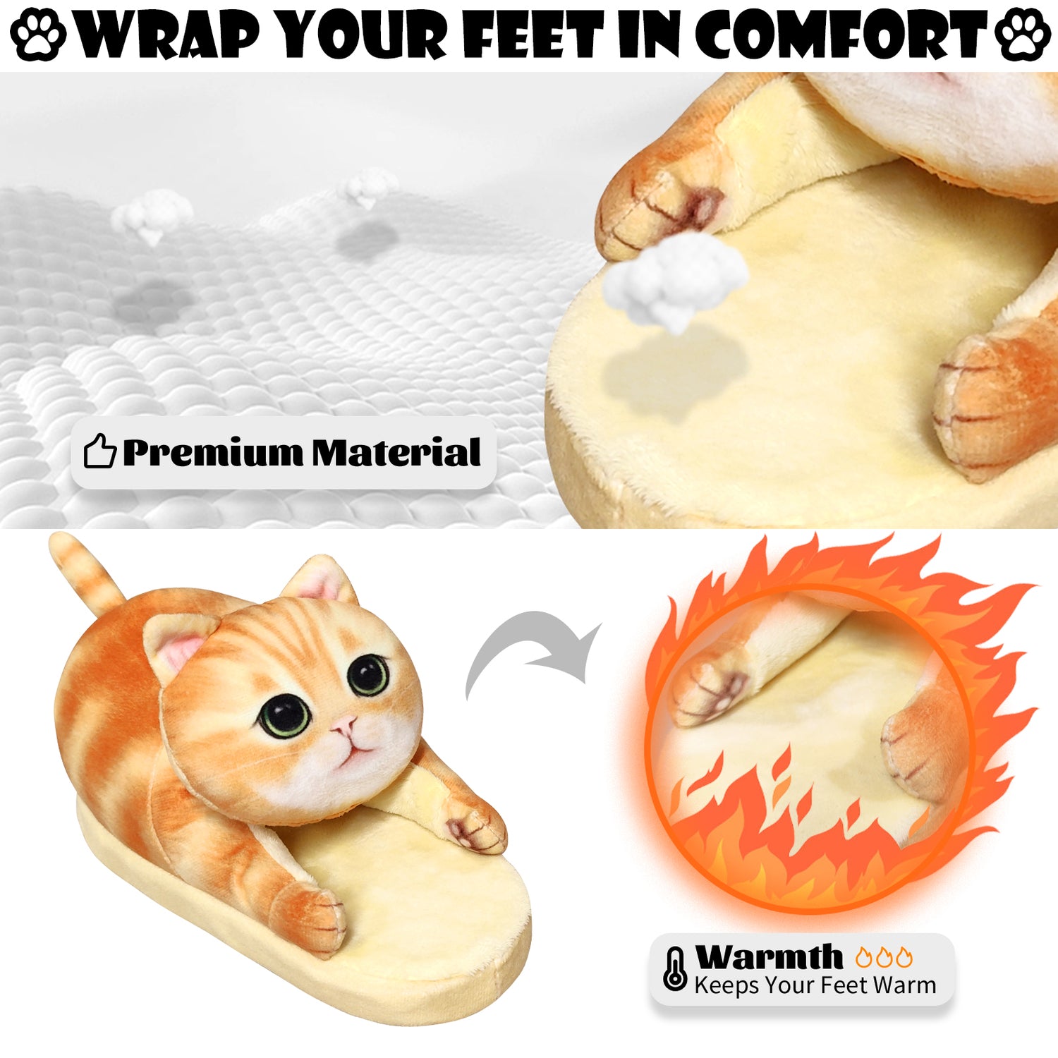 【Premium Quality】The design of the cat face details are beautiful and give the cat slipper a high quality. The detailing of ears and tail is securely sewn.Cat