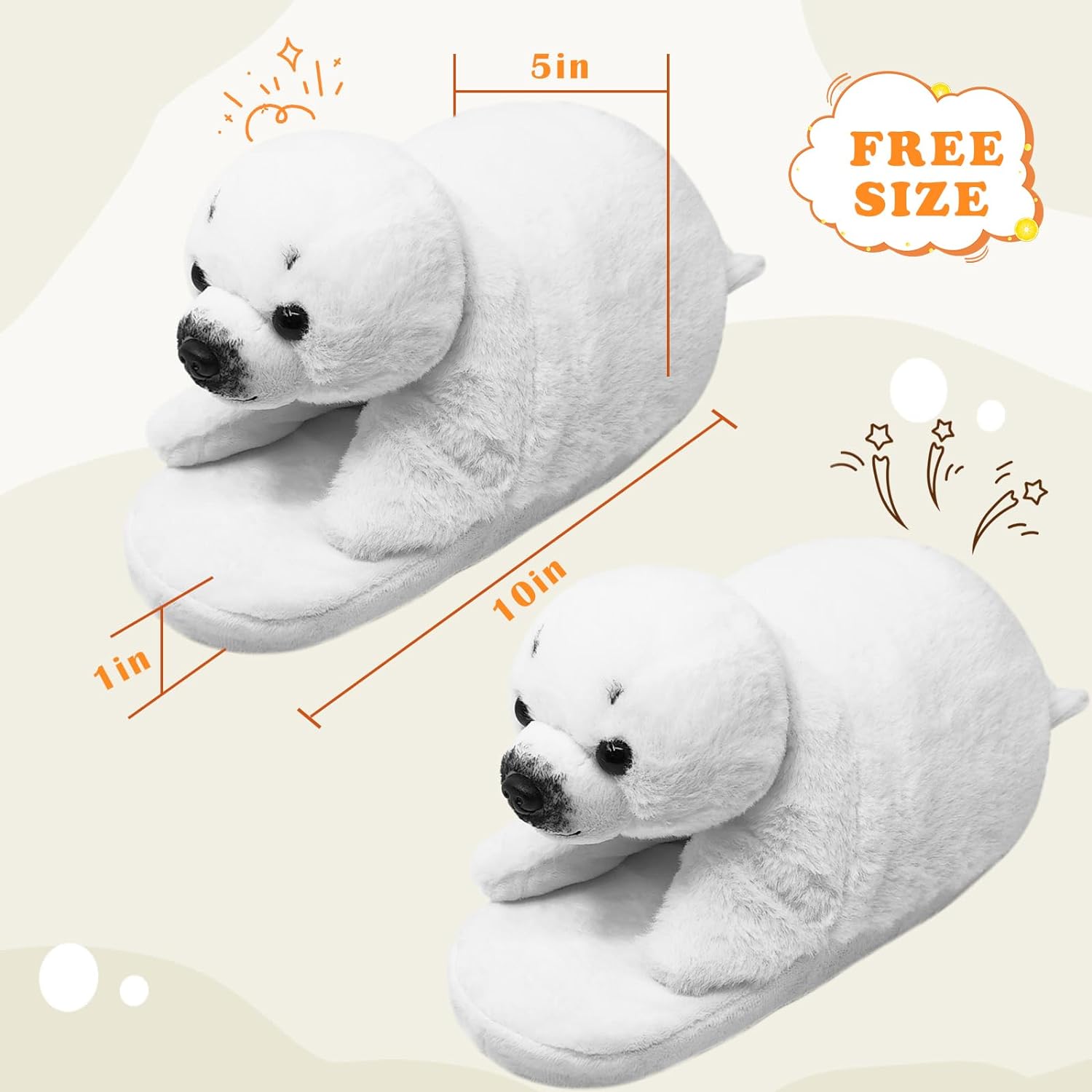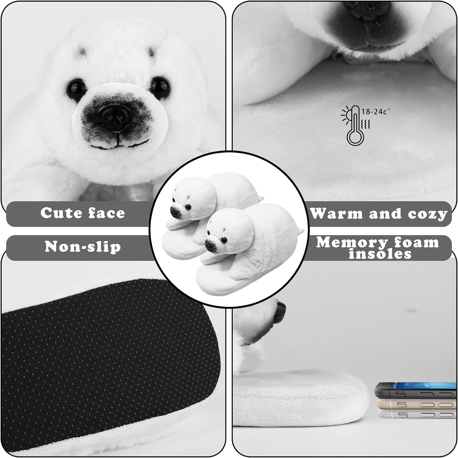 Cute Seal slippers for the face, warm Seal belly, and soft soles with anti-slip particles, allowing you to take every step safely and comfortably.