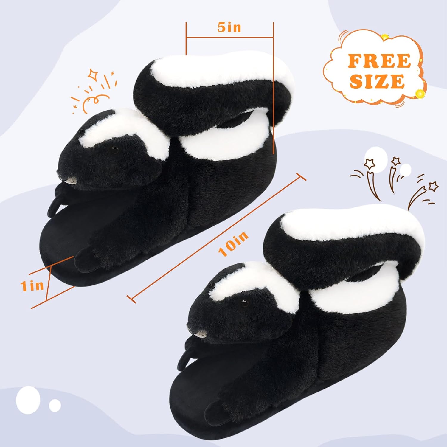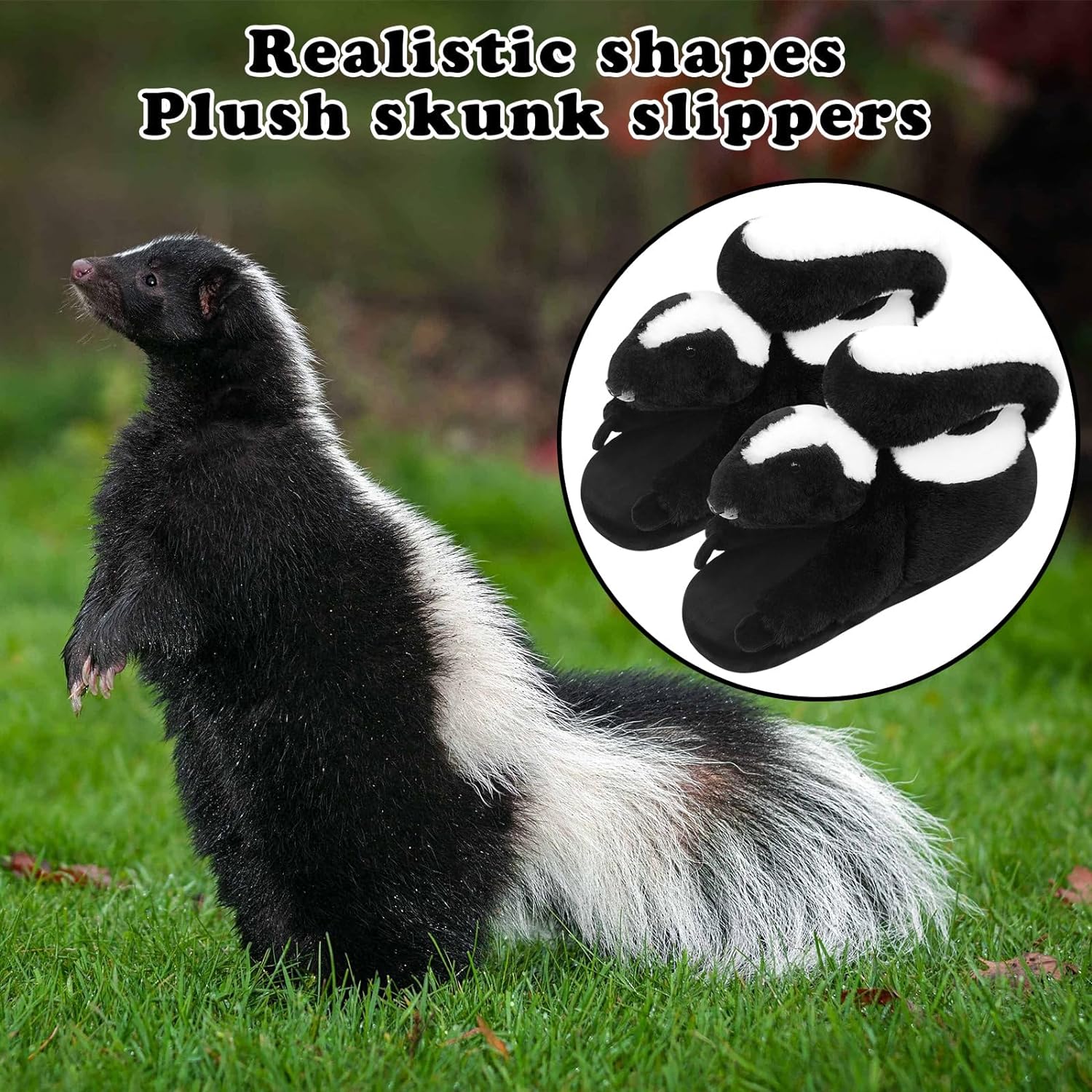 These plush skunk slippers are made of high-quality plush fabric, which is soft to the touch and has excellent warmth retention properties. The unique skunk shape design is cute and interesting and will definitely bring you a pleasant wearing experience. At the same time, its anti-slip sole design ensures you are stable and safe when walking.