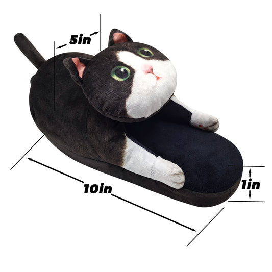 Adult black and white cat slippers